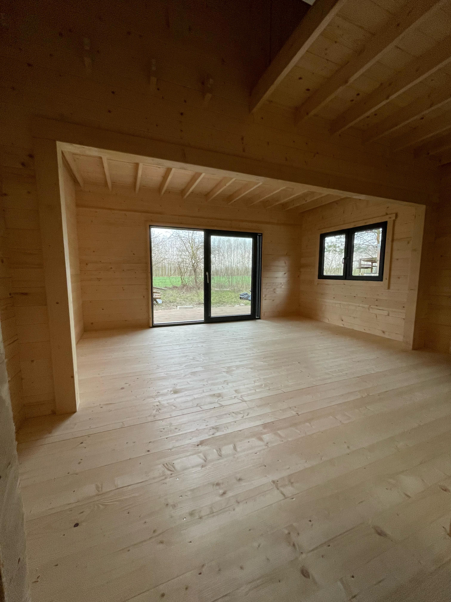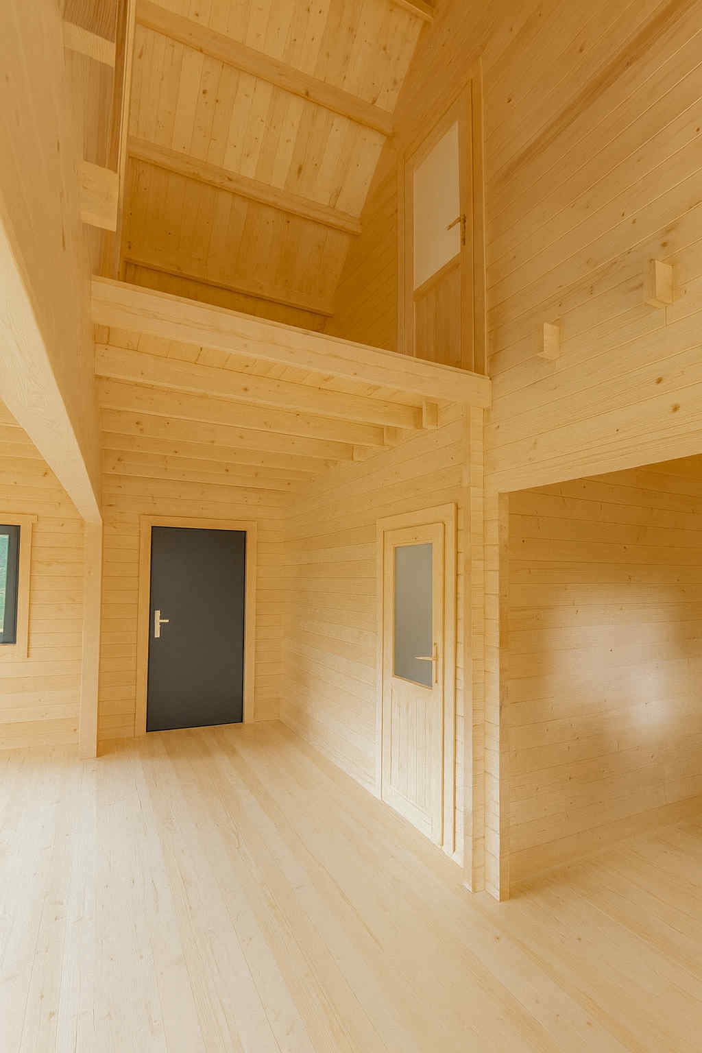 Nasze domy opierają się na konstrukcji szkieletowej z dwuteowych belek firmy Steico. Przestrzeń pomiędzy belkami wypełniona jest izolacją termiczną.