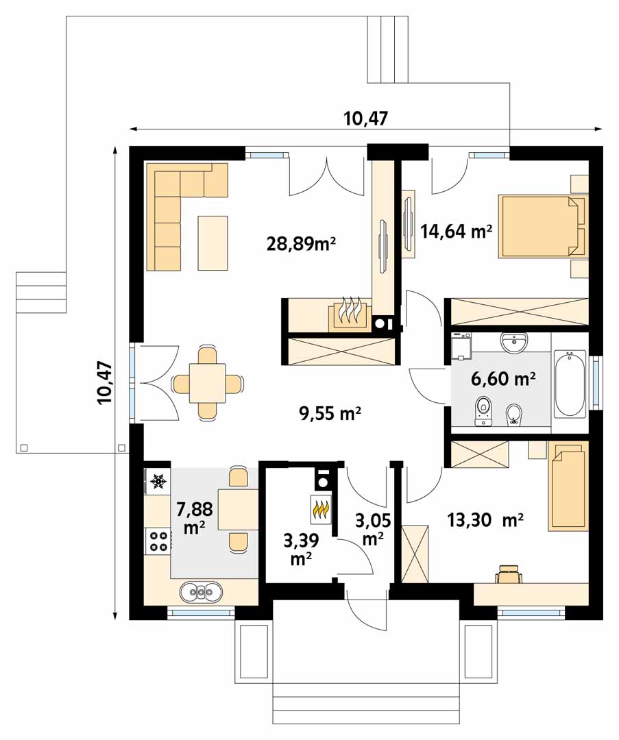 Magnifica To jednopoziomowy dom szkieletowy o powierzchni 87,30 m², zaprojektowany z myślą o 2-4 osobach, które cenią przestronność, wygodę i estetykę. Jego nowoczesna forma, doskonałe wykończenie oraz energooszczędne rozwiązania sprawiają, że jest to idealny wybór dla osób szukających funkcjonalnego, ale zarazem eleganckiego miejsca do życia. Magnifica łączy przestronność z funkcjonalnością. Przemyślany układ pozwala na wygodne życie z przestronnym salonem, w którym cała rodzina spędza wspólne chwile. Dwie sypialnie zapewniają komfortowy wypoczynek i prywatność, a oddzielna kuchnia stanowi serce domu, idealne do przygotowywania posiłków w gronie najbliższych.