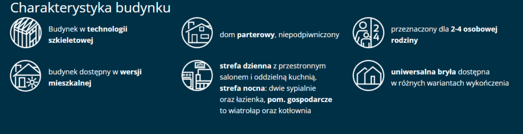 Dom w technologii szkieletowej dostępny w wersji mieszkalnej przeznaczony dla 2-4 osobowej rodziny.