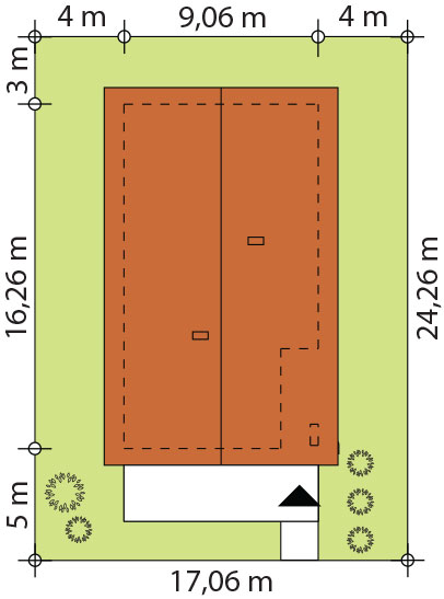 MINIMALNE GABARYTY DZIAŁKI: 17,06 m x 24,26 m