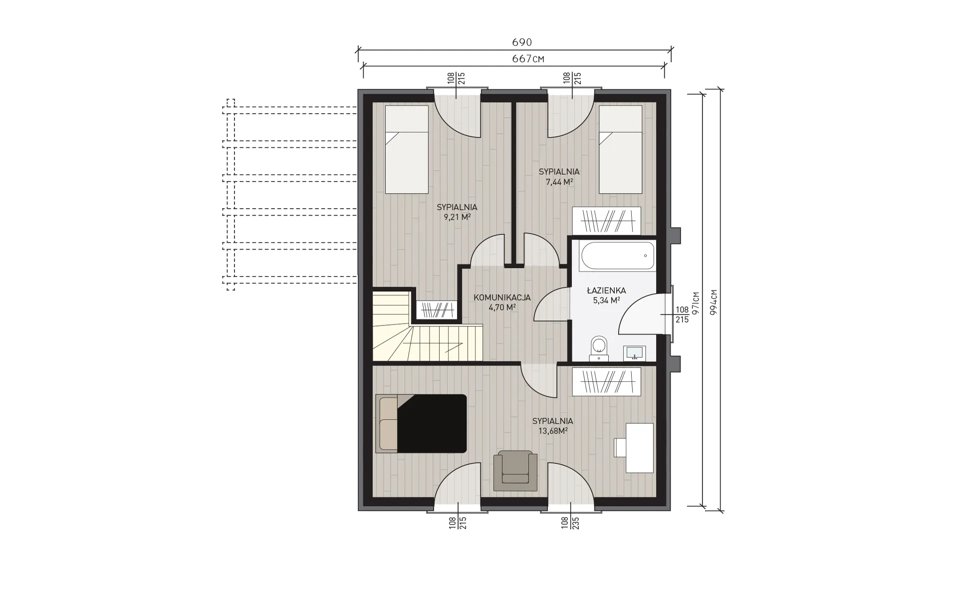 Zephira to  dom w technologii szkieletu drewnianego, stworzony z myślą o rodzinach, które cenią naturalne materiały, energooszczędność i komfort codziennego życia. To doskonałe połączenie tradycyjnego wyglądu z nowoczesnymi rozwiązaniami konstrukcyjnymi.