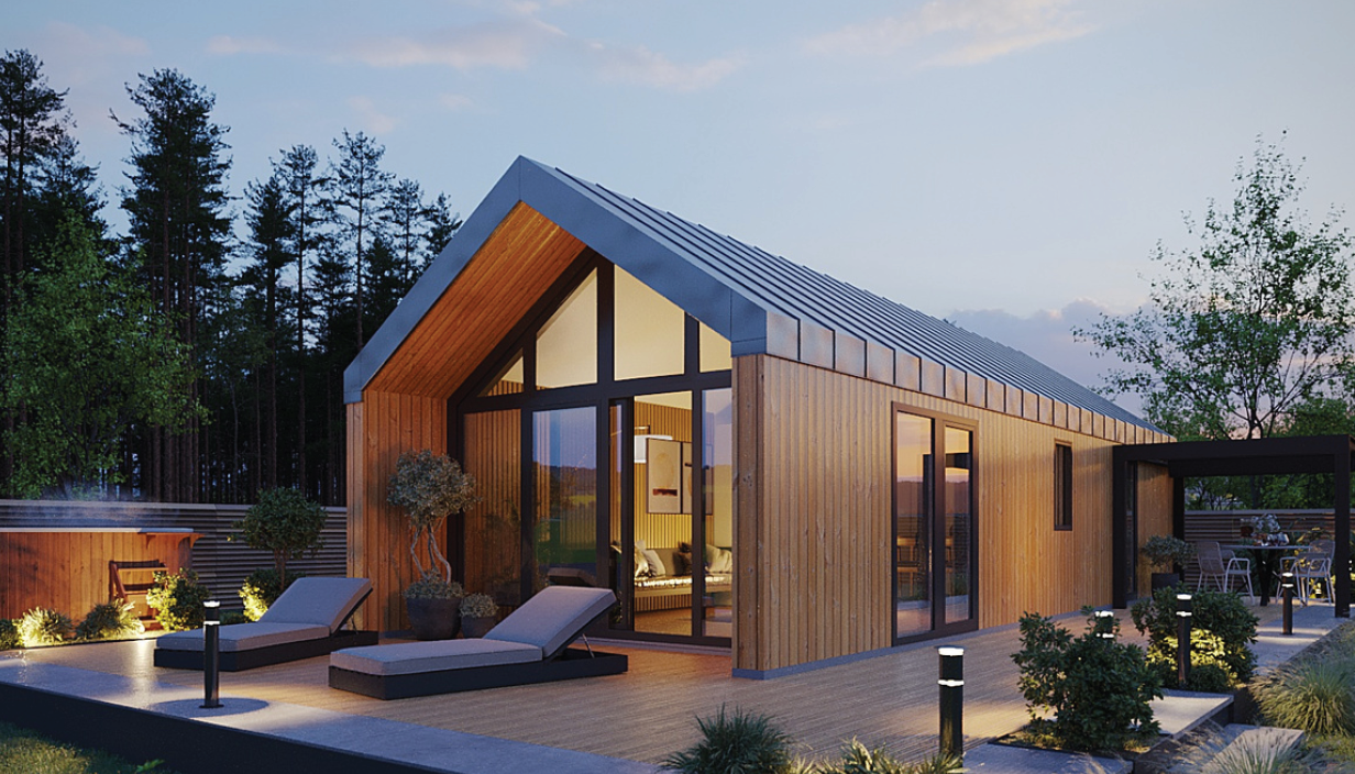 SOLEA Dom całoroczny w konstrukcji stalowo-drewnianej, w pełni ocieplony wełną mineralną (ściany 5–25 cm w zależności od wybranego pakietu, dach 5 cm). Ściany działowe wykonane w technologii szkieletowej z izolacją z wełny mineralnej.