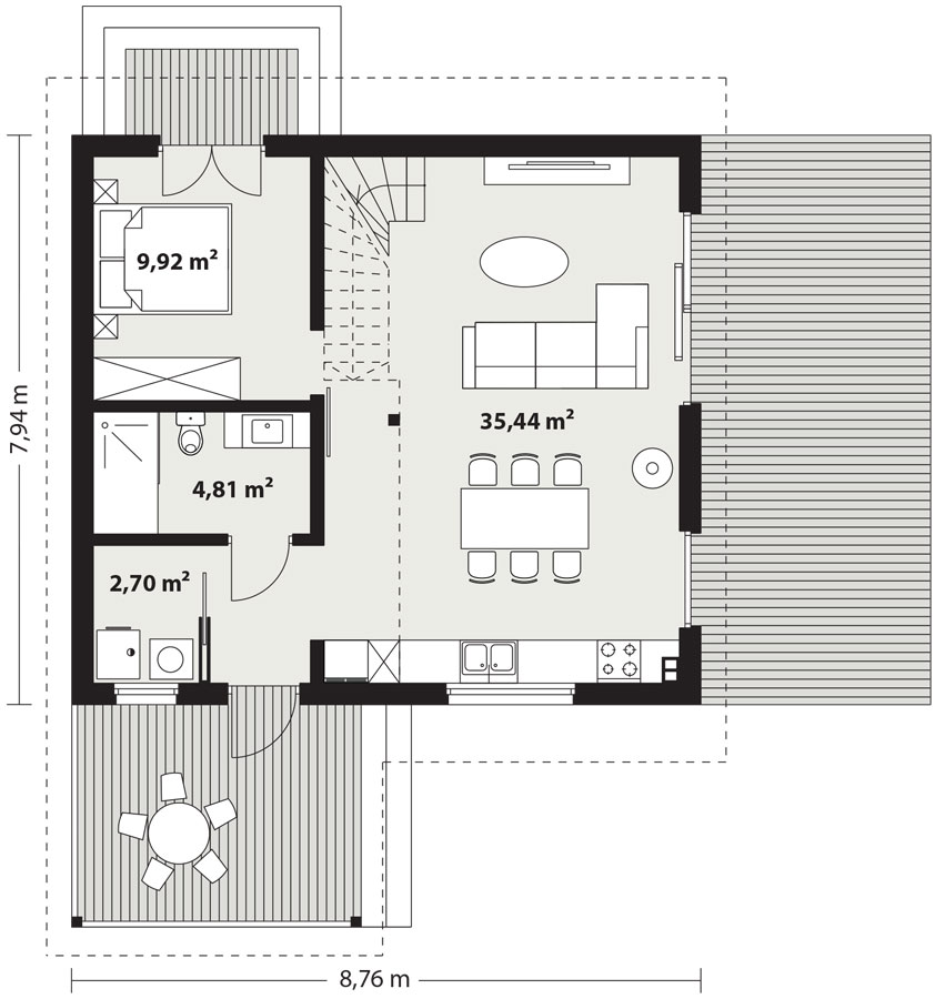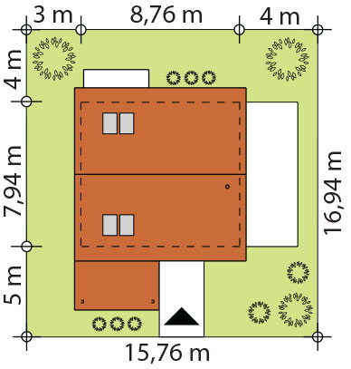 MINIMALNE WYMIARY DZIAŁKI: 15,76 m x 16,94 m