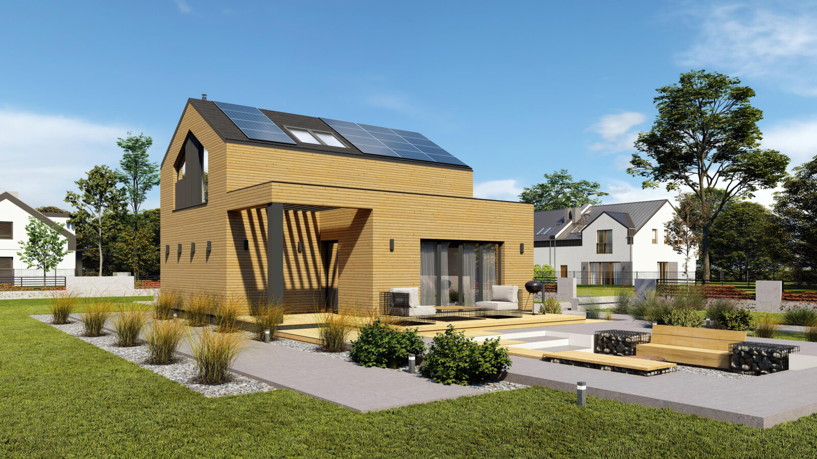 Jak każdy nasz dom Borgund został zaprojektowany w nowoczesnym stylu, dobrze wpisze się w każde otoczenie. Duży taras pozawala cieszyć się przyrodą w cieplejsze dni. Dom C2 przeznaczony jest dla rodziny 2+1.