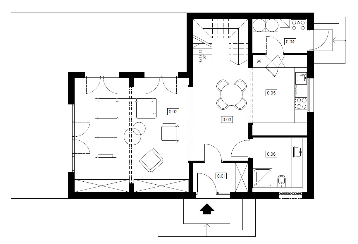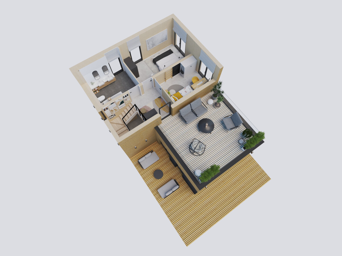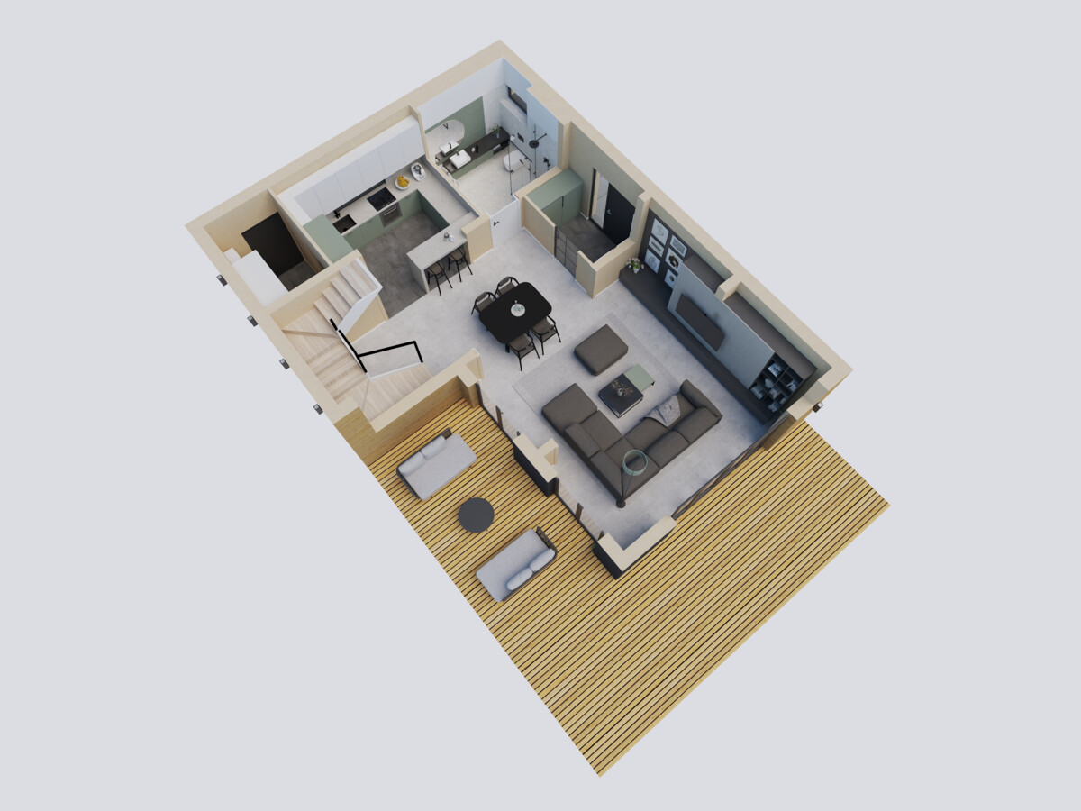 Stolmen to wyjątkowy dom dla rodziny 2+1. Salon z dużymi oknami, dostarczy dużo światła nawet w pochmurny dzień.