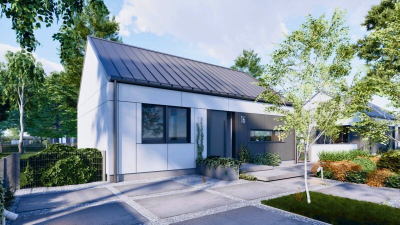 LUMINO 70 m² to nowoczesny dom prefabrykowany w technologii drewnianej, łączący solidne wykonanie z energooszczędnymi rozwiązaniami. Wersja deweloperska przygotowana jest do indywidualnego wykończenia wnętrz.