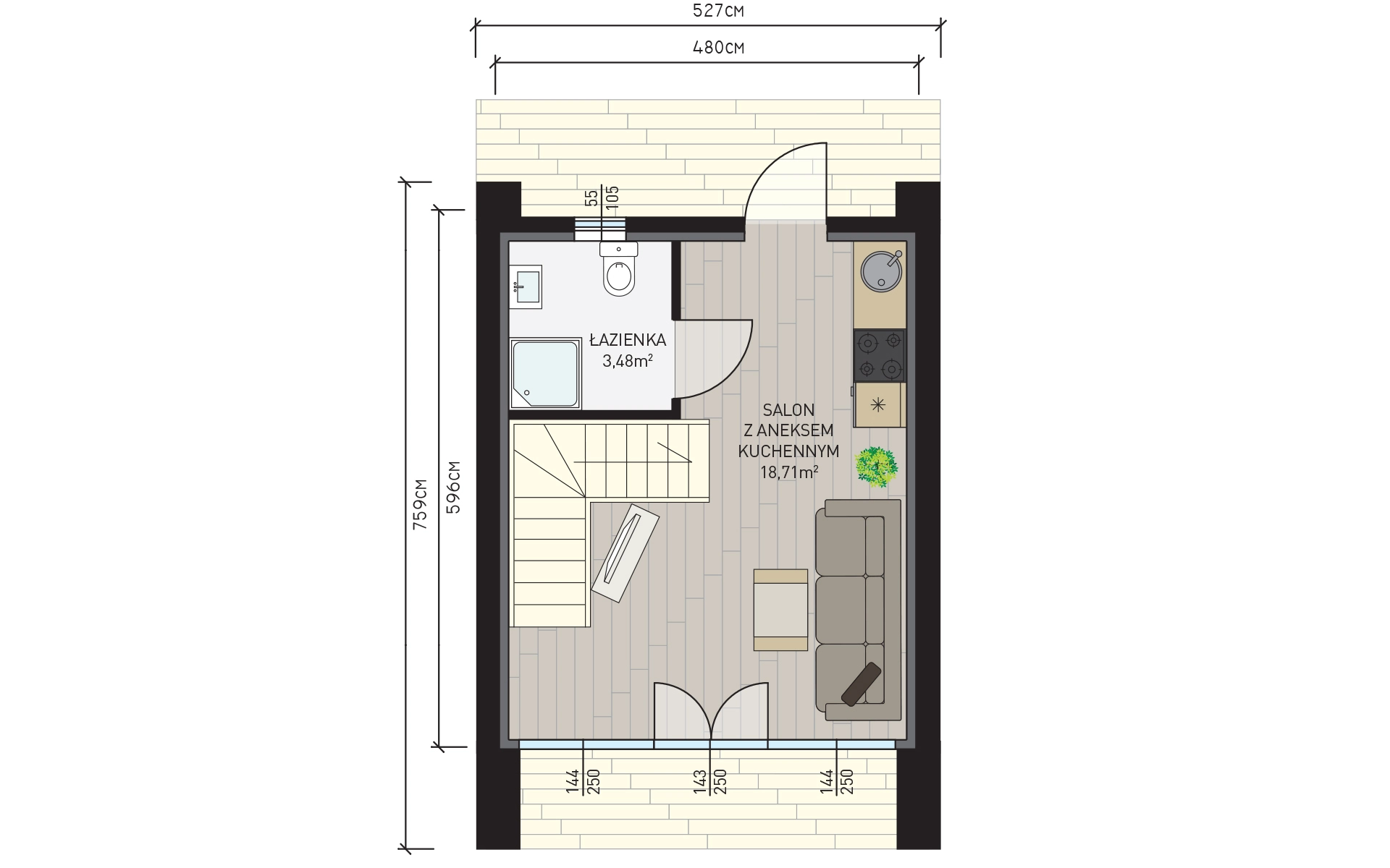 Poszczególne stany wykończenia nie zawierają ceny fundamentów, instalacji elektrycznej i wod.-kan. oraz transportu.